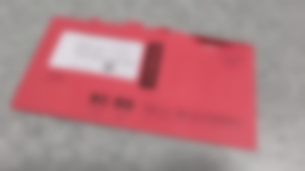 こちらは、実際に3ヶ月以上返済の遅延をした人のところに届いた実物の督促状です。封筒の色が真っ赤になっているのが分かります。