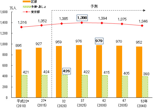 出典:「東京都区市町村別人口の予測」の概要(東京都)