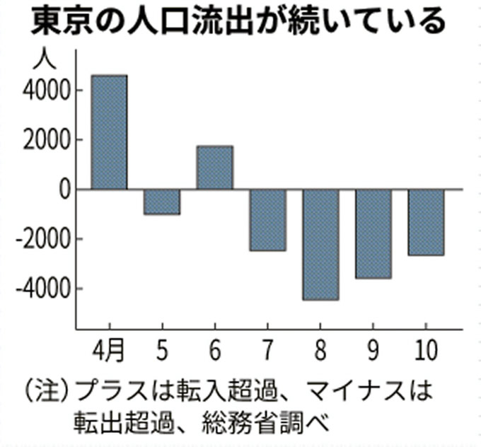 しかもこの推計はコロナ禍の前に作成されたもので、感染リスクが高いと判断した人による東京脱出の動きはすでに始まっています。東京都は転出超過となっており、コロナ禍で東京にいなくても仕事ができることに気づいてしまった人が帰ってこなければ東京の人口減少は予測よりも早く始まることになります。